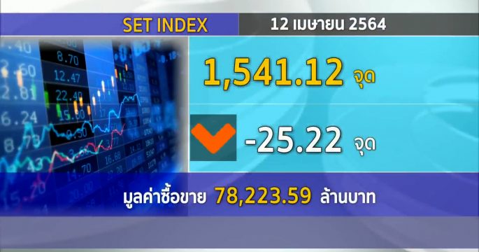 ตลาดหลักทรัพย์ปิดวันนี้ที่ระดับ 1,541.12 จุด ลดลง 25.22 จุด (-1.61%) มูลค่าการซื้อขาย 78,223.59 ล้านบาท ขายลดเสี่ยงหลังยอดผู้ติดเชื้อโควิดไม่นิ่ง-หยุดยาวสงกรานต์