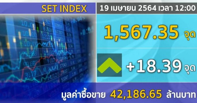 ตลาดหุ้นไทย ช่วงเที่ยง +18.39 จุด