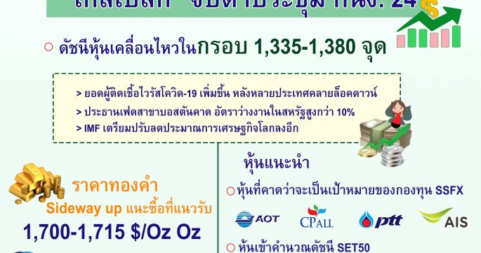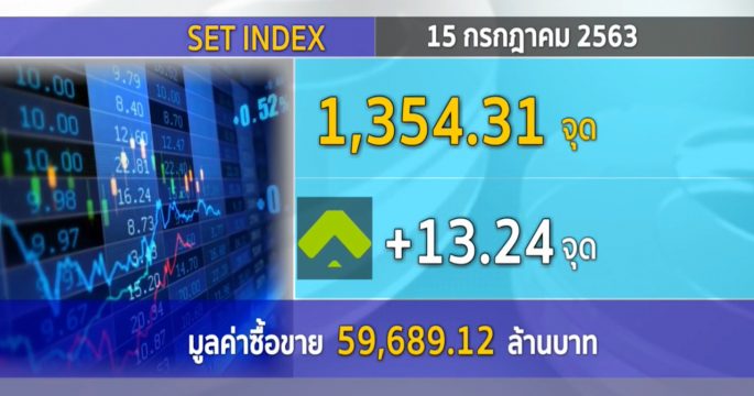 ผู้สื่อข่าวรายงานว่าดัชนีตลาดหลักทรัพย์ฯ ปิดวันนี้ (15 ก.ค.) ที่ระดับ 1,354.31 จุด เพิ่มขึ้น 13.24 จุด หรือ 0.99% มูลค่าการซื้อขาย 59,689.12 ล้านบาท โดยการซื้อขายหุ้นวันนี้ฟื้นตัวขึ้น ขานรับคืบหน้าวัคซีนต้านโควิด ลุ้นพรุ่งนี้ขึ้นต่อ