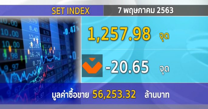 ตลาดหลักทรัพย์ปิดวันนี้ที่ระดับ 1,257.98 จุด ลดลง 20.65 จุด (-1.62%) มูลค่าการซื้อขาย 56,253.32 ล้านบาท เผชิญแรงขายทำกำไร โดยการซื้อขายหุ้นวันนี้ ดัชนีหุ้นไทยเคลื่อนไหวในแดนลบตลอดทั้งวัน