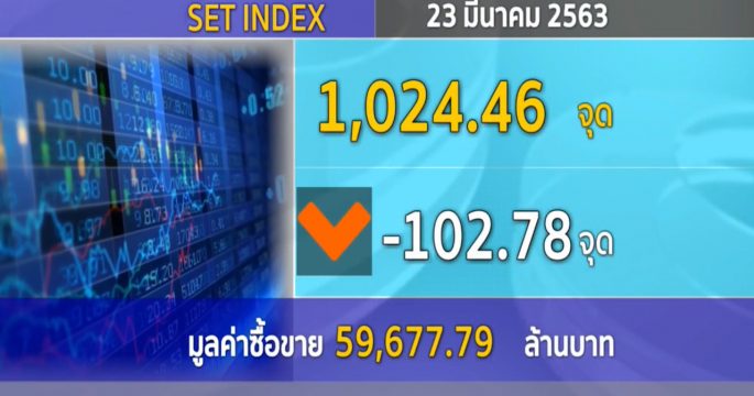ตลาดหลักทรัพย์ปิดวันนี้ที่ระดับ 1,024.46 จุด ลดลง 102.78 จุด (-9.12%) มูลค่าการซื้อขาย 59,677.79 ล้านบาท
