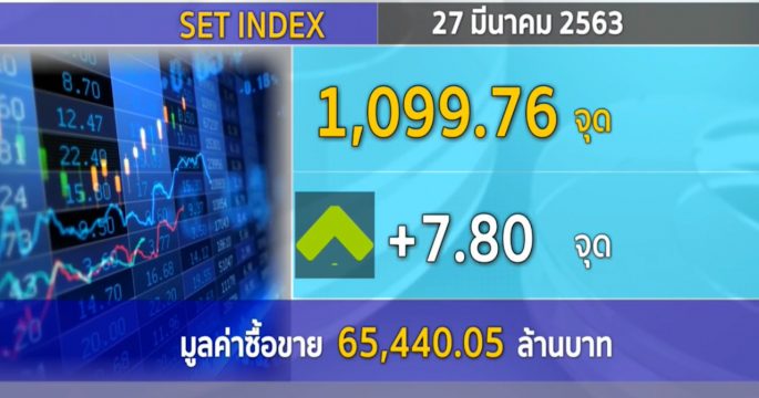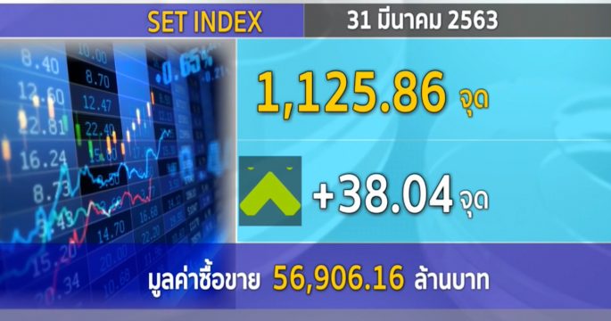 ดัชนีตลาดหลักทรัพย์ฯ ปิดวันนี้ (31 มี.ค.) ที่ระดับ 1,125.86 จุด เพิ่มขึ้น 38.04 จุด หรือ 3.50% มูลค่าการซื้อขาย 56,906.16 ล้านบาท โดยดัชนีเคลื่อนไหวแดนบวกตลอดทั้งวัน รีบาวด์ตามต่างประเทศ หลังการระบาดของโควิด-19 ในยูโรโซนเริ่มนิ่ง