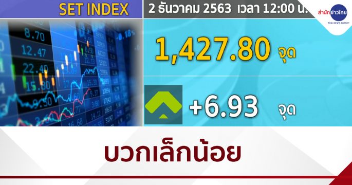 ตลาดหุ้นไทยภาคเช้าเปิดบวก โดยดัชนียังได้แรงหนุนจากกระแสเงินต่างชาติที่ไหลเข้าในกลุ่มที่ได้ประโยชน์จากวัคซีนต้านโควิด-19