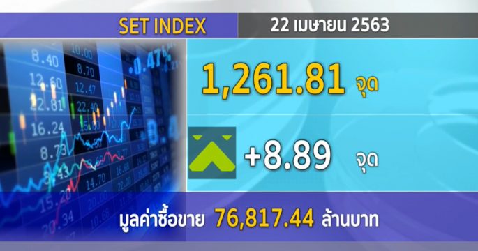 ดัชนีตลาดหลักทรัพย์ฯ ปิดวันนี้ (22 เม.ย.) ที่ระดับ 1,261.81 จุด เพิ่มขึ้น 8.89 จุด หรือ 0.71% มูลค่าการซื้อขาย 76,817.44 ล้านบาท โดยดัชนีเคลื่อนไหวแดนลบตลอดช่วงเช้า แต่ช่วงบ่ายดัชนีฯ สามารถรีบาวด์ขึ้นมาในแดนบวก จับตาผ่อนคลายล็อกดาวน์