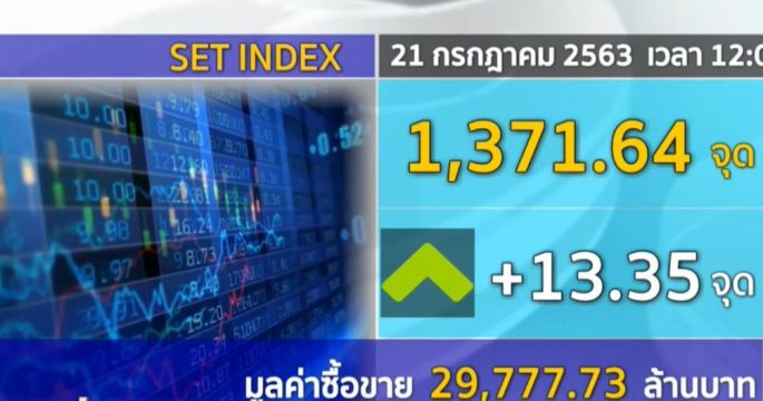 หุ้นไทยภาคเช้าสดใส บวกตามตลาดภูมิภาค ขานรับความคืบหน้าวัคซีนโควิด-19 ดัชนีช่วงเที่ยงอยู่ที่ 1,371.64 จุด เพิ่มขึ้น 13.35 จุด มูลค่าซื้อขาย 29,777.73 ล้านบาท