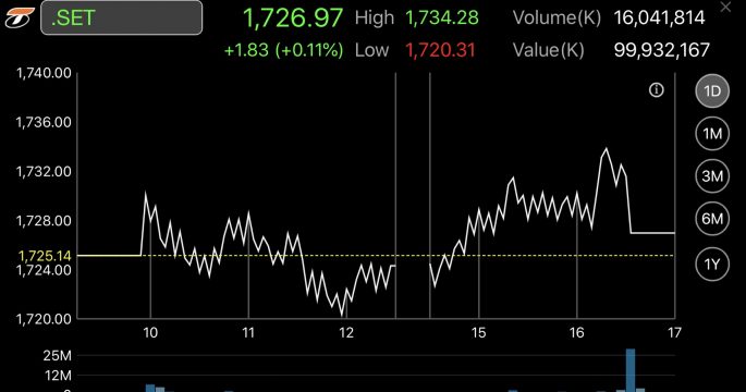 ตลาดหุ้นไทยบวกเล็กน้อย 1.83 จุด แต่มูลค่าการซื้อขายหนาแน่น หุ้นพลังงานประคองตลาด