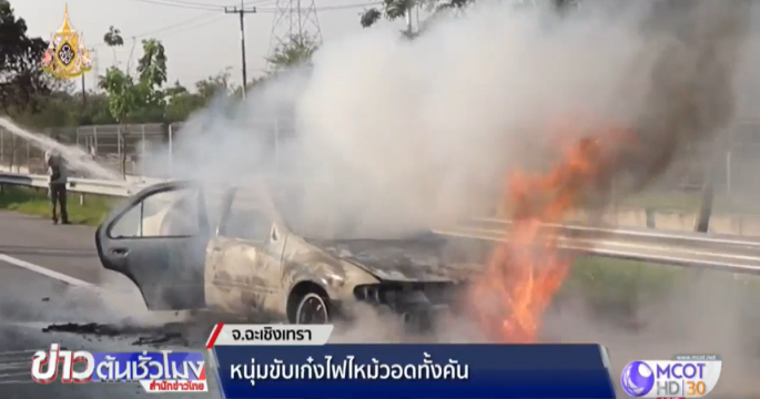 รถเก๋งติดแก๊สเกิดไฟไหม้บนทางหลวงมอเตอร์เวย์ วอดไปทั้งคัน ขณะมุ่งหน้าไปสมุทรปราการ เคราะห์ดีไม่มีผู้ได้รับบาดเจ็บ