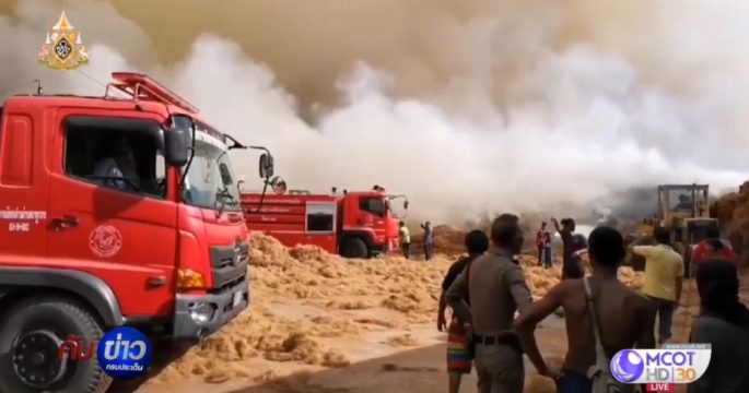 อากาศร้อนจัด ไฟไหม้โรงงานใยมะพร้าวอด เสียหายกว่า 100 ล้านบาท