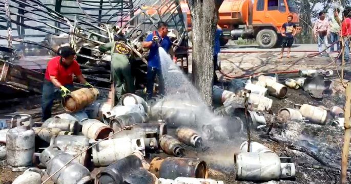 ระทึกกลางทาง รถหกล้อขนถังแก๊สกว่า 100 ใบ จากโรงงานจะไปส่งลูกค้าในเมืองหัวหิน เกิดไฟลุกไหม้ไม่ทราบสาเหตุวอดทั้งคัน คนขับปลอดภัย
