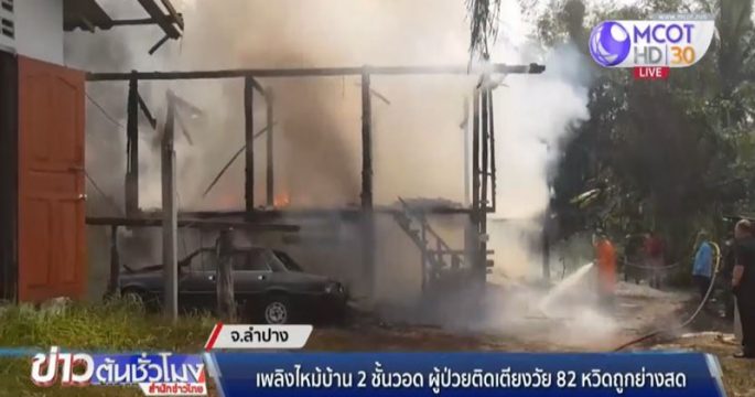 กู้ภัยและดับเพลิงช่วยกันระดมฉีดน้ำสกัดเพลิงลุกไหม้บ้านไม้ 2 ชั้น ใน ต.นิคมพัฒนา อ.เมืองลำปาง ผู้ป่วยติดเตียงวัย 82 ปี พลเมืองดีช่วยปลอดภัย