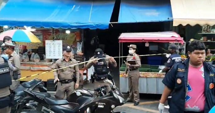 เพชรบุรี 6 ก.ย. – “ดาบตำรวจ” ยิงสามีภรรยาเสียชีวิตภายในร้านขายไข่ ภายในตลาดสด 18 เมตรเพชรบุรี ก่อนยิงตัวเองหนีความผิด ตำรวจภูธรเมืองเพชรบุรี เข้าตรวจสอบที่เกิดเหตุภายในร้านขายไข่ ภายในตลาดสด 18 เมตรเพชรบุรี พบร่าง น.ส.ศิวพร อายุ 31 ปี และนายกฤษดา อายุ 33 ปี สามีภรรยา ทั้งคู่นอนเสียชีวิตในสภาพถูกยิงด้วยปืนซิกซาวเออร์ p320 ขนาด 9 มม. เข้าที่ศีรษะทั้งคู่ ห่างออกไป 20 เมตร พบศพ ด.ต.สมศักดิ์ ในลักษณะมือขวากำปืน 1 กระบอก สอบสวนทราบว่า ด.ต.สมศักดิ์ และสามีภรรยาคู่กรณี เคยมีปากเสียงกันเรื่องขายไข่มากว่า 1 ปี กระทั่งเช้ามืดวันนี้ (6 ก.ย.) ด.ต.สมศักดิ์ มายิงสามีภรรยาเสียชีวิตในร้าน หลังก่อเหตุได้เดินห่างจากจุดเกิดเหตุไป 20 เมตร ก่อนใช้ปืนกระบอกเดียวกันยิงตัวเองหนีความผิด.-สำนักข่าวไทย