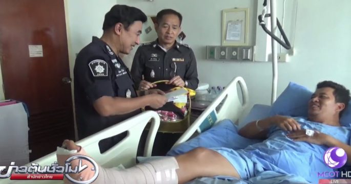 รอง ผบช.ภ.5 นำกระเช้าเยี่ยมอาการบาดเจ็บดาบตำรวจพิษณุ เมืองเหลือ ที่ได้รับบาดเจ็บขณะเข้าจับกุมยาบ้า