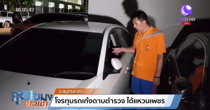ล้วงคองูเห่า! โจรทุบรถดาบตำรวจ จอดอยู่ข้างโรงยิมแบดมินตันที่สมุทรสาคร ทั้งที่มีเสื้อข้าราชการตำรวจแขวนไว้ตรงเบาะคนขับ ฉกกระเป๋าสะพายหลัง มีแหวนเพชร 2 วง โทรศัพท์มือถือ และเงินสด 1,000 บาท