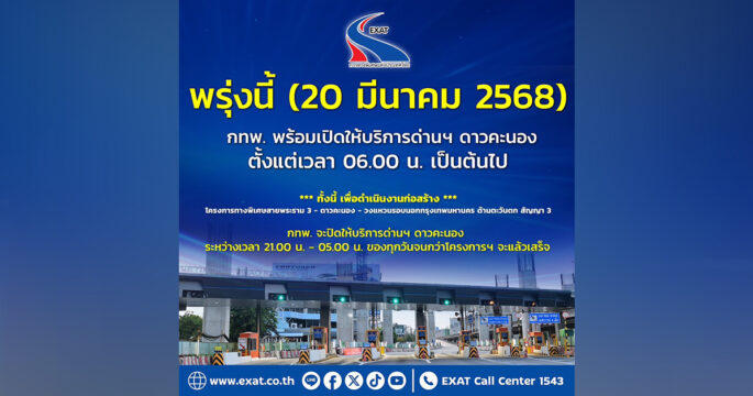 พร้อมเปิดใช้ทางเข้าด่านฯ ดาวคะนอง ตั้งแต่ 6 โมงเช้า