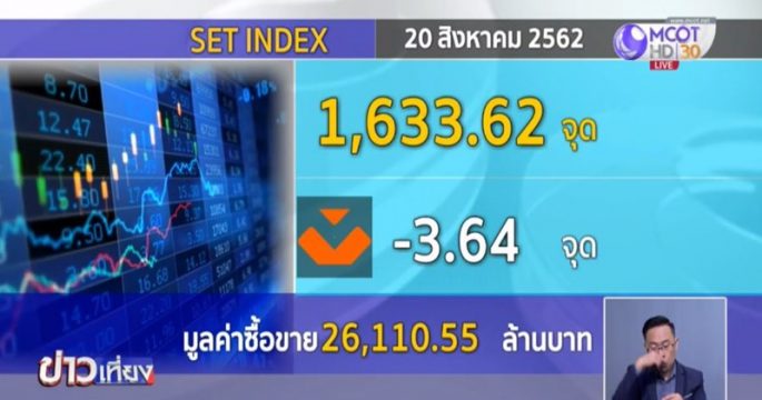 ดัชนีช่วงเที่ยงปิดลบ 3.64 จุด ที่ระดับ 1,633.62 จุด มูลค่าการซื้อขาย 26,110.55 ล้านบาท
