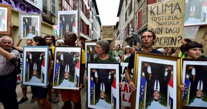 ผู้ประท้วง 8 คนถูกดำเนินคดีในกรุงปารีสของฝรั่งเศสวันนี้ ฐานขโมยภาพของประธานาธิบดีเอมานูว์แอล มาครงที่ติดอยู่ตามอาคารสาธารณะในขณะประท้วง