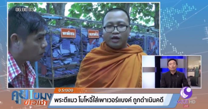 ครูหนุ่มแจ้งตำรวจดำเนินคดีพระตีแมว ด้านพระในคลิป เผยโมโหแมวฉี่รดเพาเวอร์แบงก์ จึงใช้ใบไม้ตีปาก เพื่อลงโทษ ก่อนหิ้วหนังคอแมวกลับกุฏิ แต่ถูกแมวข่วน จึงสะบัดทิ้งด้วยความเจ็บ ทำให้แมวลอยตกกระแทกพื้น