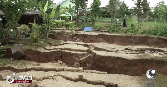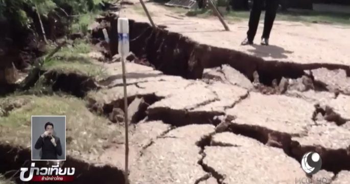 ปริมาณฝนที่ตกหนัก นอกจากจะทำให้น้ำท่วมสูงในหลายจังหวัดแล้ว ยังส่งผลให้เกิดดินทรุดตัวในหลายพื้นที่