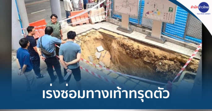 เร่งซ่อมพื้นทางเดินเท้าบริเวณทางขึ้นรถไฟฟ้า แยกไฟฉาย ทรุดตัว