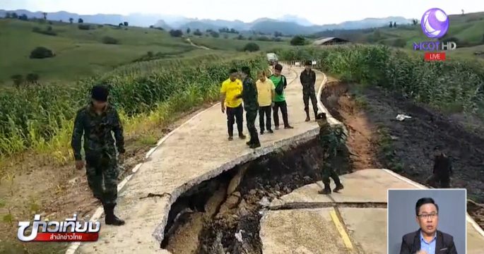 ยอดดอยใน อ.พบพระ จ.ตาก เกิดการสไลด์ตัว ยุบเป็นหลุมใหญ่ จากฝนที่ตกหนักต่อเนื่องหลายวัน อีกทั้งการทรุดตัวยังขยายวงกว้างจนถนนทางเข้าหมู่บ้านขาดสัญจรไม่ได้