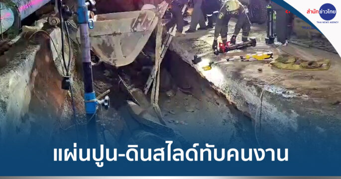 แผ่นปูน-ดินสไลด์ทับคนงาน ขณะวางท่อ ถ.พระราม 2