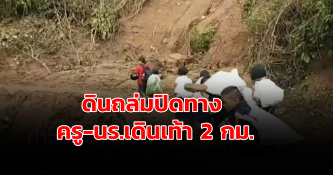 ผลพวงจากฝนตกหนักและดินถล่มปิดทับเส้นทางบ้านแม่ปุ๋น-บ้านห้วยเดื่อ ที่ อ.แม่สะเรียง จ.แม่ฮ่องสอน ทำให้การขนวัตถุดิบเพื่อนำไปประกอบอาหารกลางวันให้เด็กนักเรียนเป็นไปอย่างยากลำบาก