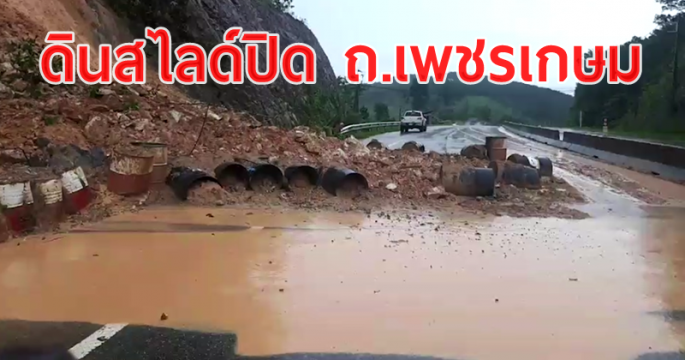 จ.ระนอง ฝนตกหนักตลอดคืน ส่งผลให้ดินภูเขาสไลด์ปิดเส้นทาง ถ.เพชรเกษม บริเวณบ้านบกกราย มุ่งหน้า อ.กระบุรี เจ้าหน้าที่เร่งเคลียร์พื้นที่ เพื่อเปิดการจราจร
