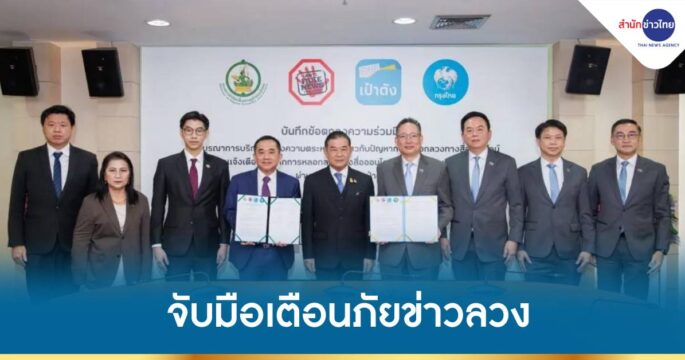 กระทรวงดิจิทัลฯ ผนึกกำลังแบงก์กรุงไทย เพิ่มช่องทางแจ้งเตือนภัยจากการหลอกลวงทางสื่อออนไลน์และข่าวปลอมที่เกี่ยวกับอาชญากรรมทางการเงินผ่านแอป “เป๋าตัง” เพิ่มสปีดในการเข้าถึงประชาชนมากกว่า 40 ล้านคน