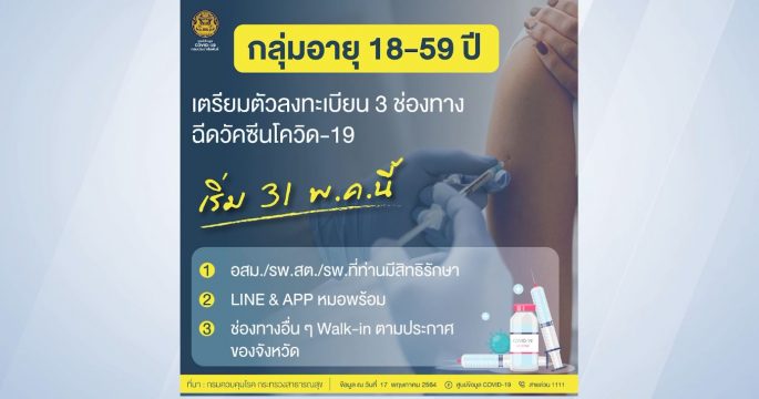 มีข่าวดีสำหรับกลุ่มอายุ 18-59 ปีที่สามารถลงทะเบียนจองฉีดวัคซีนช่วงสิ้นเดือนนี้ ทั่วไทยมีการฉีดวัคซีนป้องกัน “โควิด-19” แล้ว 2.2 ล้านโดส