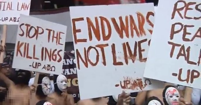 นักศึกษาชายฟิลิปปินส์เปลือยกายวิ่งประท้วงดูเตอร์เต