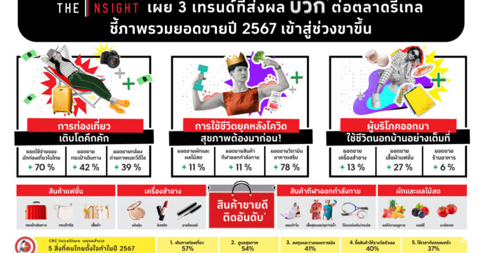กรุงเทพฯ 30 ม.ค.- The 1 Insight  ภายใต้กลุ่มเซ็นทรัล เผยผลวิเคราะห์พฤติกรรมผู้บริโภค พบภาพรวมตลาดรีเทลเติบโตดี   เทรนด์สำคัญปี 67 ได้แก่ การท่องเที่ยว  เทรนด์การดูแลสุขภาพและผู้บริโภคยังเต็มที่กับการใช้ชีวิตนอกบ้านมากขึ้น