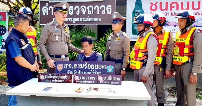ประจวบคีรีขันธ์ 8 มิ.ย.- ด่านสามร้อยยอดรวบ 3 ผู้ต้องหาสายส่งยาบ้ากว่า 900,000 เม็ด พร้อมรถนำทางมุ่งหน้าลงใต้ พ.ต.อ.บุญเลิศ บวรมหาชนก ผกก.สภ.สามร้อยยอด จ.ประจวบคีรีขันธ์ ได้รับมอบหมายจาก พล.ต.ต.ประเสริฐ ศิริพรรณาภิรัตน์ รักษาราชการแทนผู้บังคับการตำรวจภูธรจังหวัด ให้นำกำลังตั้งด่านตรวจบนถนนเพชรเกษม หน้า สภ.สามร้อยยอด เนื่องจากได้เบาะแสการลักลอบขนยาเสพติดล๊อตใหญ่ผ่านเส้นทางดังกล่าวเพื่อไปภาคใต้ โดยพบรถยนต์ต้องสงสัย สีขาว ทะเบียน 4 กฎ 6759 กรุงเทพมหานคร กับรถกระบะ สีดำ ทะเบียน ฌธ 6963 กรุงเทพมหานคร จึงเรียกขอตรวจค้นพบยาบ้า 456 มัด จำนวน 912,000 เม็ด ซุกซ่อนอยู่ในตู้ลำโพงของรถยนต์ สีขาว ส่วนรถกระบะ เป็นรถนำทางไม่พบสิ่งกฎหมาย เจ้าหน้าที่จึงนำรถไปเข้าเครื่องเอ็กซเรย์ที่ด่านศุลกากรปราณบุรีเพื่อค้นหาสิ่งผิดกฎหมายเพิ่มเติม พร้อมคุมตัวคนขับรถทั้งสองคัน คือ นายปฐมพร พรเสงี่ยมนุกูล อายุ 27 ปี (รถเก๋ง) และนายสุทัศ กระจายศรี […]