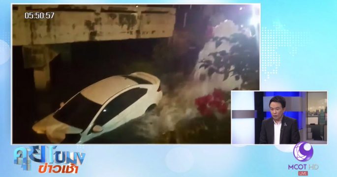 หนุ่มขับเก๋งชนรั้วกั้นสะพานพุ่งตกคลองย่านบางขุนเทียน คนขับบาดเจ็บเล็กน้อย สารภาพมีอาการง่วงและเผลอหลับ รู้ตัวอีกทีรถตกลงไปในคลองแล้ว