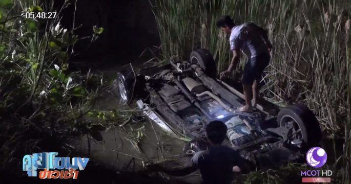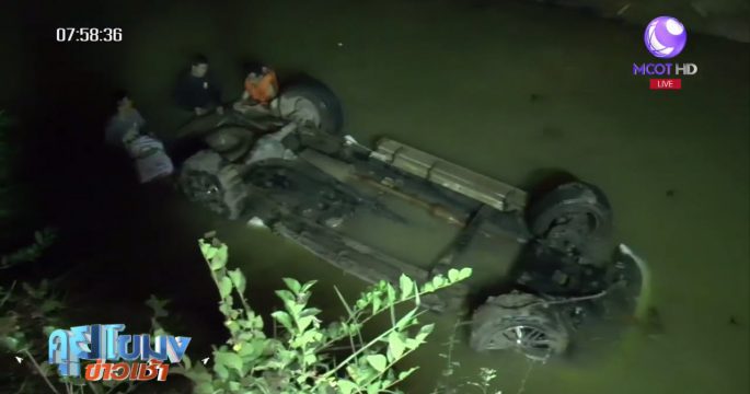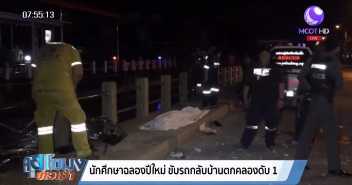 3 นักศึกษามหาวิทยาลัยชื่อดังขับรถเก๋งชนขอบทาง ก่อนตกลงไปในคลองจมหายทั้งคัน บาดเจ็บเล็กน้อย 2 คน เสียชีวิต 1 คน