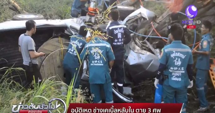เกิดอุบัติเหตุรถปิกอัพพลิกคว่ำตกถนนสาย 347 บางปะหัน มุ่งหน้าบางปะอิน มีผู้เสียชีวิตติดอยู่ในซากรถรวม 3 ศพ
