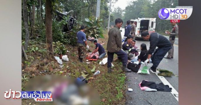 รถกระบะซิ่งกลับบ้านกลางดึก พุ่งตกถนนข้างทางไกลกว่า 100 เมตร กระแทกคันดินพลิกหลายตลบรถพังยับทั้งคัน เสียชีวิตคาที่ 4 ศพ บาดเจ็บสาหัส 1 ราย