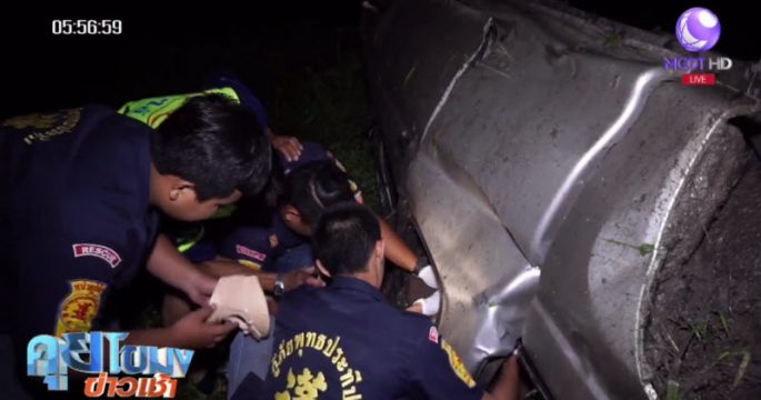 กล้องหน้ารถจับภาพนาทีชีวิต ชายเมาซิ่งกระบะปาดหน้ารถคันอื่น ก่อนพลิกคว่ำตกหนองน้ำที่ อ.หลังสวน จ.ชุมพร