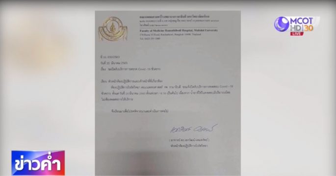 คณะแพทยศาสตร์ รพ.รามาธิบดี ขอปิดบริการตรวจโควิด-19 ชั่วคราวตั้งแต่วันนี้ (20 มี.ค.) เวลา 16.30 น. เนื่องจากน้ำยาที่ใช้ทดสอบมีปริมาณน้อย ไม่เพียงพอต่อการให้บริการ