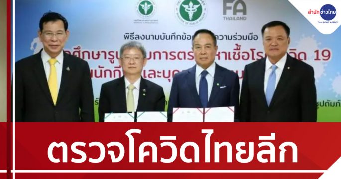สธ.3 ก.ย.-กรมวิทยาศาสตร์การแพทย์-สมาคมกีฬาฟุตบอลแห่งประเทศไทยฯ ลงนามความร่วมมือตรวจหาเชื้อโควิด- 19 นักกีฬาฟุตบอลและบุคลากรในการแข่งขันไทยลีกกว่า 6,100 คน ตรวจ 4 ครั้งทั้งก่อนและระหว่างแข่งขัน นายอนุทิน ชาญวีรกูล รองนายกรัฐมนตรีและรัฐมนตรีว่าการกระทรวงสาธารณสุข เป็นประธานในพิธีลงนามบันทึกข้อตกลง ว่าด้วยความร่วมมือเพื่อการตรวจหาเชื้อก่อโรคโควิด- 19 นักกีฬาและบุคลากรฟุตบอลอาชีพ ระหว่างกรมวิทยาศาสตร์การแพทย์กับสมาคมกีฬาฟุตบอลแห่งประเทศไทย ในพระบรมราชูปถัมภ์ วันนี้ (3ก.ย.) ที่กระทรวงสาธารณสุขโดยมี นพ.โอภาส การย์กวินพงศ์ อธิบดีกรมวิทยาศาสตร์การแพทย์ และพล.ต.อ.สมยศ พุ่มพันธุ์ม่วง นายกสมาคมกีฬาฟุตบอลแห่งประเทศไทย ในพระบรมราชูปถัมภ์ เป็นผู้ลงนาม นายอนุทิน กล่าวว่า กระทรวงสาธารณสุข โดยกรมวิทยาศาสตร์การแพทย์ และสมาคมกีฬาฟุตบอลแห่งประเทศไทย ในพระบรมราชูปถัมภ์ ได้จัดทำบันทึกข้อตกลงเพื่อดำเนินการตรวจหาเชื้อก่อโรคโควิด-19 ในนักกีฬาและบุคลากรฟุตบอลอาชีพในการแข่งขันไทยลีก ระยะเวลา 1 ปี เพื่อป้องกันการแพร่ระบาดโรคโควิด-19 หลังจากรัฐบาลได้มีมาตรการผ่อนปรนกิจการต่างๆ รวมถึงการจัดแข่งขันกีฬาแบบมีผู้ชม ที่ต้องจัดภายใต้มาตรการป้องกันควบคุมโรค โดยการแข่งขันฟุตบอลไทยลีกที่จะเริ่มแข่งขันในวันที่ 12 กันยายน 2563 ทั่วทุกภาคของประเทศไทย ก็ต้องดำเนินการตามคู่มือการปฏิบัติตามมาตรการผ่อนปรนกิจการและกิจกรรมด้านการกีฬา เพื่อป้องกันการแพร่ระบาดของโรคโควิด-19 ที่กำหนดให้นักกีฬาและบุคลากรฟุตบอลอาชีพทุกคนในทีม ต้องผ่านการตรวจทางห้องปฏิบัติการหาเชื้อไวรัสโควิด-19 ด้วยวิธี […]