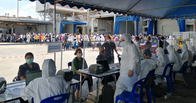 ก.แรงงาน 31 พ.ค.-กระทรวงแรงงานขานรับนายกรัฐมนตรีบูรณาการกับหน่วยงานที่เกี่ยวข้อง และ รพ.ในเครือข่ายประกันสังคม ตรวจโควิด-19 เชิงรุกแรงงานในสถานประกอบการและแคมป์คนงานจังหวัดปทุมธานีและนนทบุรี ควบคุมการแพร่ระบาดของโรค นายสุชาติ ชมกลิ่น รัฐมนตรีว่าการกระทรวงแรงงาน เปิดเผยถึงสถานการณ์การแพร่ระบาดของโควิด-19 ในแคมป์คนงานว่า พล.อ.ประยุทธ์ จันทร์โอชา นายกรัฐมนตรีและรัฐมนตรีว่าการกระทรวงกลาโหม มีความห่วงใยต่อสถานการณ์ดังกล่าวจึงสั่งการให้กระทรวงแรงงาน บูรณาการกับกระทรวงมหาดไทย ผู้ว่าราชการจังหวัด สาธารณสุขจังหวัด และโรงพยาบาลในเครือข่ายประกันสังคม ดำเนินการตรวจโควิด-19 เชิงรุกแก่แรงงานในสถานประกอบการและแคมป์คนงานในพื้นที่จังหวัดปทุมธานีและนนทบุรี เพื่อควบคุมการแพร่ระบาดของโควิด-19 นายสุชาติ กล่าวต่อว่า จังหวัดปทุมธานี เริ่มตรวจโควิด – 19 เชิงรุกในสถานประกอบการ เริ่มตั้งแต่วันนี้ (31 พ.ค.) จำนวน 3 แห่ง ได้แก่ บริษัท ไทสัน ลูกจ้างจำนวน 1,948 คน บริษัทโชคชัย เอ็นจิเนียริ่ง ลูกจ้างจำนวน 825 คน และ บริษัทเคลแมกซ์ แมซินเนอรี่ ลูกจ้างจำนวน 136 คน โดยมีโรงพยาบาลการุญเวช […]