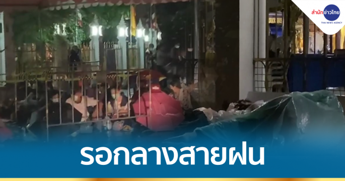 ประชาชนนั่งรอ-นอนรอ ตรวจหาเชื้อโควิดฟรี ท่ามกลางสายฝน หน้าวัดพระศรีมหาธาตุฯ บางเขน บางส่วนมาตั้งแต่ช่วงหัวค่ำ รอรับบัตรคิว 6 โมงเช้า เริ่มตรวจ 8 โมง