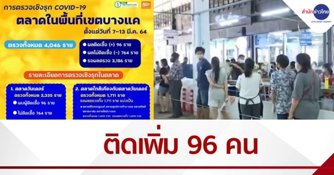 ผลตรวจโควิดเชิงรุกตลาดย่านบางแค ช่วง 7-13 มี.ค. ทั้งหมด 4,046 คน เบื้องต้นพบผู้ติดเชื้อในตลาดวันเดอร์ 96 คน ไม่ติดเชื้อ 764 คน ที่เหลืออยู่ระหว่างรอผลตรวจ
