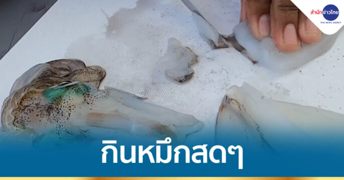 นักท่องเที่ยวนั่งเรือไปตกหมึกสดกลางทะเล จ.ตรัง ที่ได้หมึกทำซาชิมิกับน้ำจิ้มซีฟู๊ดกินกันสดๆ บนเรือ บรรยากาศสุดฟิน