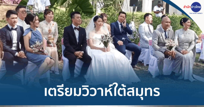 คู่บ่าวสาวที่ร่วมแต่งงานในงานวิวาห์ใต้สมุทร ร่วมพิธีหลั่งน้ำพระพุทธมนต์ ก่อนจดทะเบียนสมรสที่เกาะกระดาน พรุ่งนี้ (14 ก.พ.)