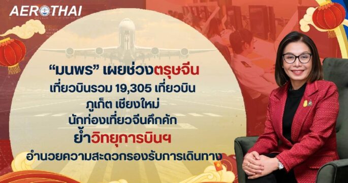 “มนพร” เผยช่วงตรุษจีนเที่ยวบินรวม 19,305 เที่ยวบิน ภูเก็ต เชียงใหม่ นักท่องเที่ยวจีนคึกคัก ย้ำวิทยุการบินฯ อำนวยความสะดวกรองรับการเดินทาง