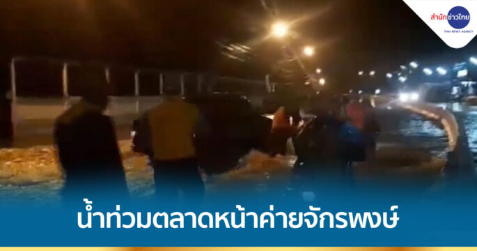 พายุหมาอ๊อนส่งผลกระทบน้ำทะลักท่วมตลาดหน้าค่ายจักรพงษ์ กลางเมืองปราจีน จิตอาสาจากกองพลทหารราบที่ 2 รักษาพระองค์ ช่วยชาวบ้านขนย้ายสิ่งของหนีน้ำ
