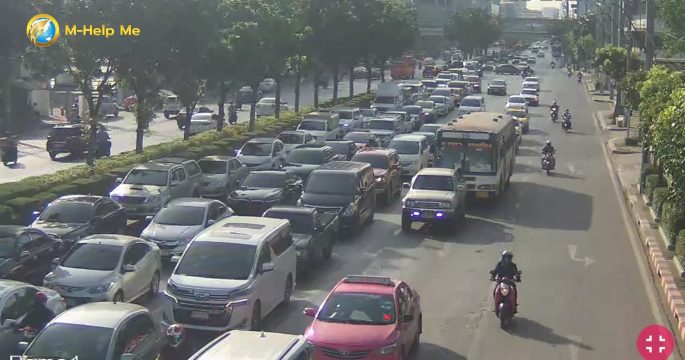 จราจรเช้าวันศุกร์ ถนนพระราม 4 ขาเข้า รถติดขัดผ่านหน้าตลาดคลองเตย พ้นแล้วเข้าไปแยกวิทยุ ยังหนาแน่น มีท้ายสะสมอยู่ที่ใต้ทางด่วนพระราม 4