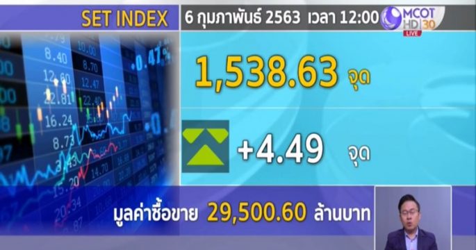 หุ้นไทยเช้านี้ปรับฐานลงตามตลาดต่างประเทศ จากความกังวลการระบาดของโควิด-19 ดัชนีช่วงเที่ยงลดลง 8.55 จุด มูลค่าการซื้อขาย 37,242.77 ล้านบาท
