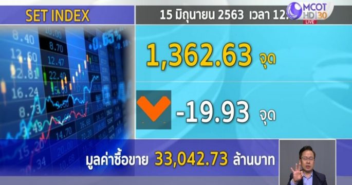 ตลาดหุ้นภาคเช้าร่วงแรง ตามตลาดต่างประเทศวิตกโควิด-19 ระบาดระลอก 2 ประกอบกับราคาน้ำมันดิบร่วงต่อเนื่อง โดยดัชนีช่วงเที่ยงลดลง 19.93 จุด มูลค่าการซื้อขาย 33,042.73 ล้านบาท