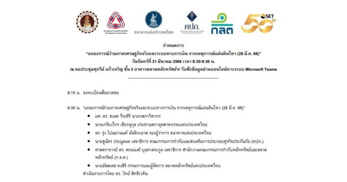เรียลเซคเตอร์-ตลาดทุน-ธปท. จับมือแถลงด่วนก่อนตลาดหลักทรัพย์​ฯ เปิดทำการพรุ่งนี้ สร้างความเชื่อมั่นหลังเกิดเหตุแผ่นดินไหว